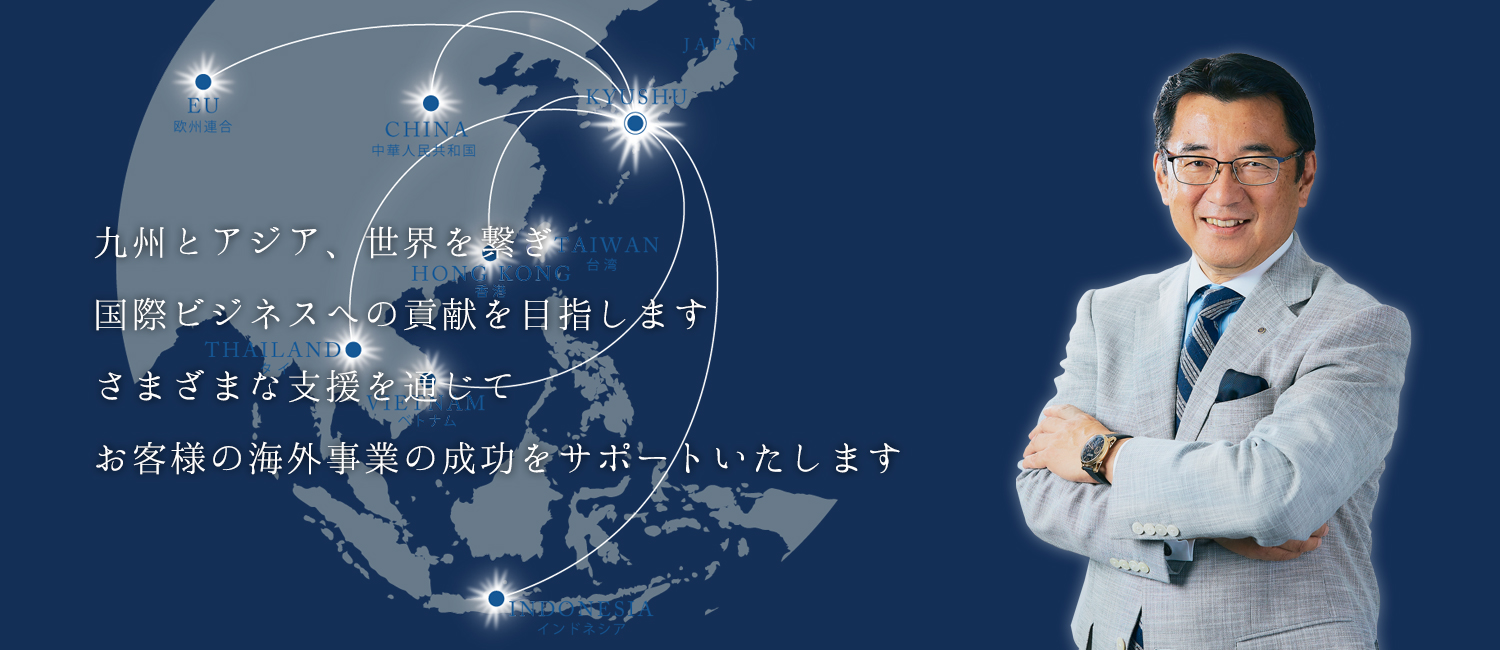 九州を始めとする日本企業や地方公共団体等と海外企業等とのマッチングを通して、日本と中国、東南アジア、更には欧米とのグローバルビジネスの橋渡しを行います。